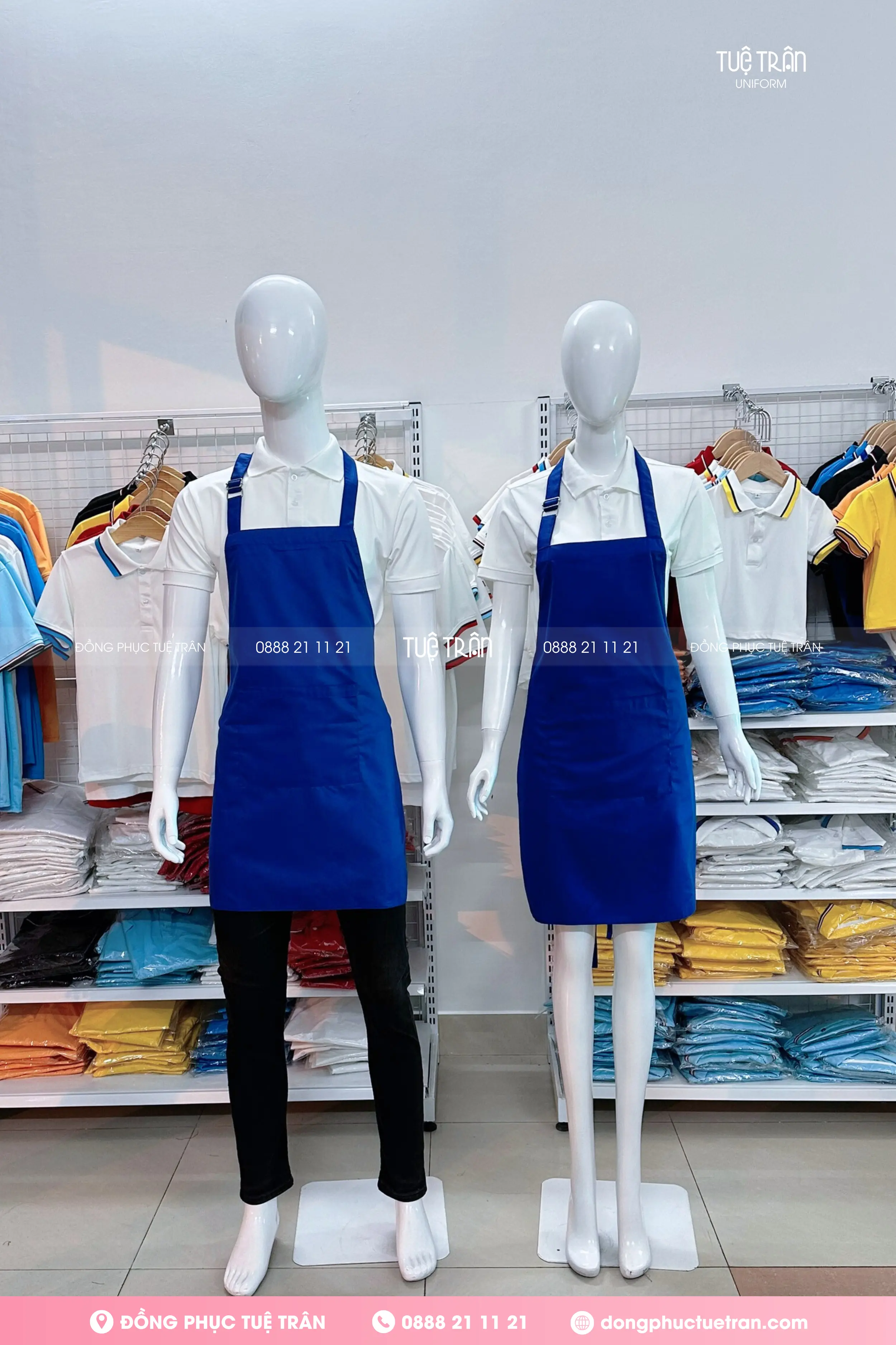 Đồng phục tạp dề yếm màu xanh bích